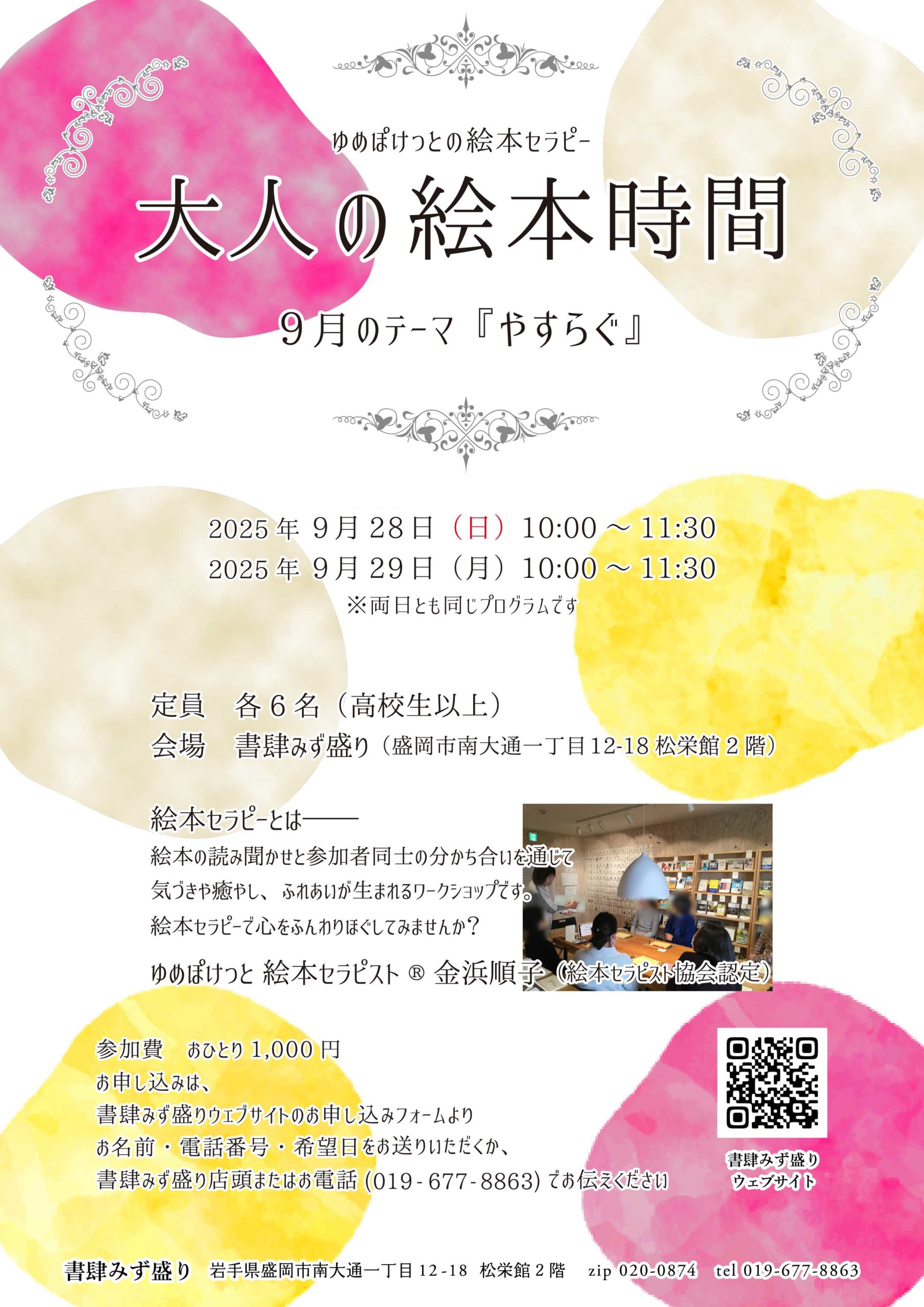 絵本セラピー「大人の絵本時間」、9月のご案内です。