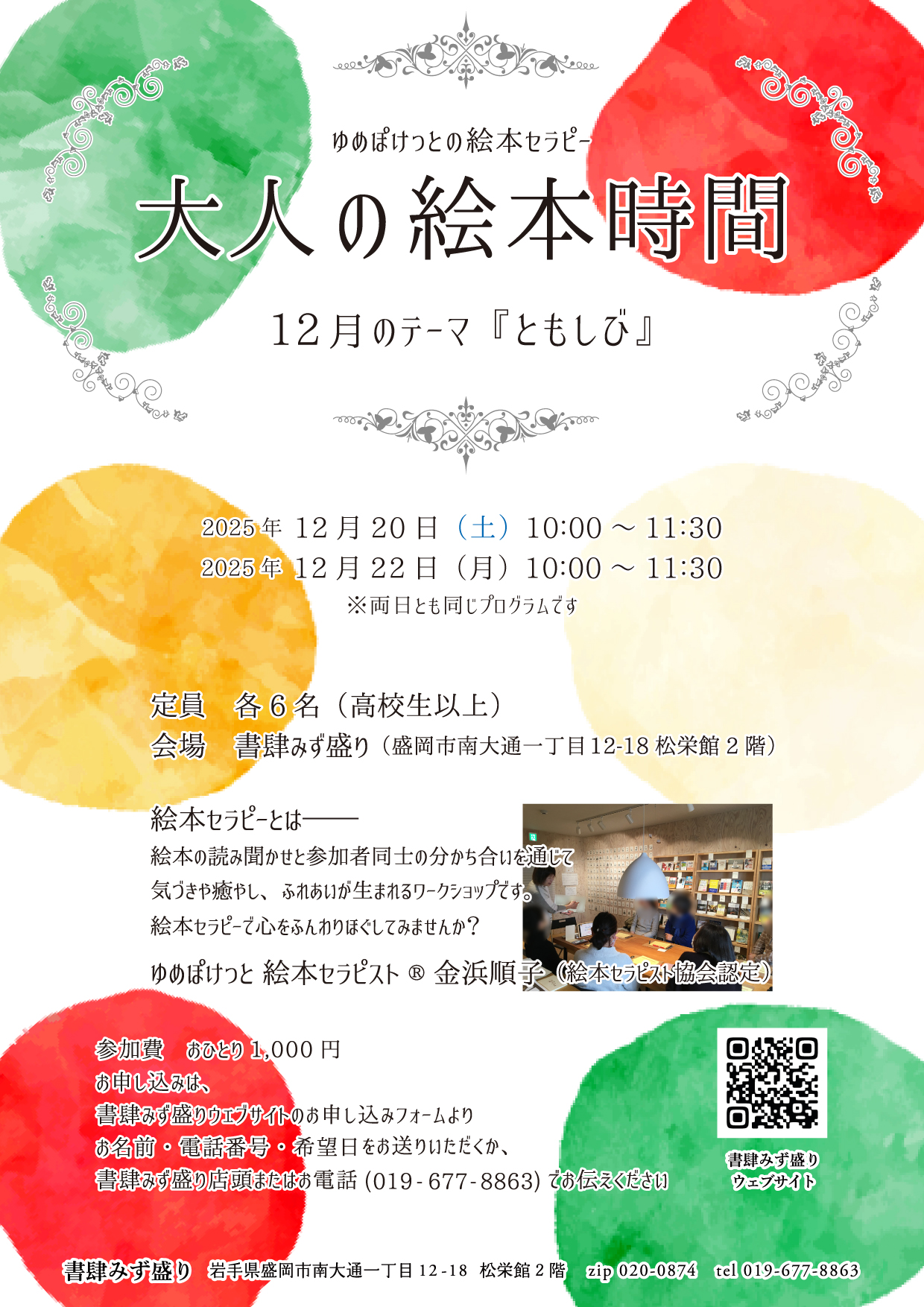 絵本セラピー「大人の絵本時間」、12月のご案内です。