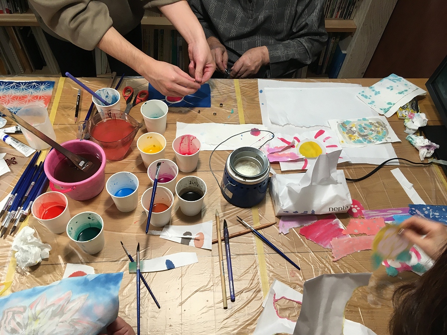 紙貼りから蝋引き、絵付けまでを体験できます。