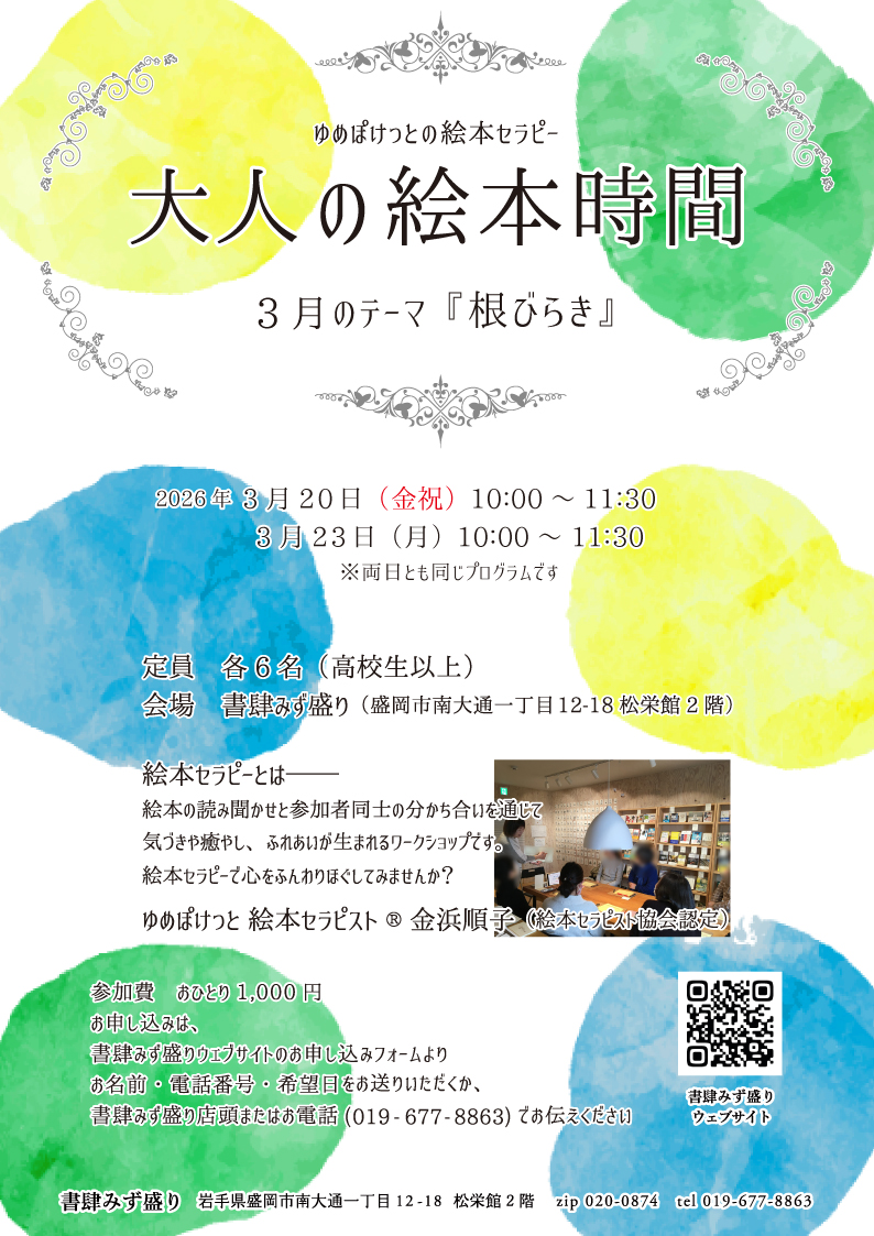 絵本セラピー「大人の絵本時間」3月のご案内です。